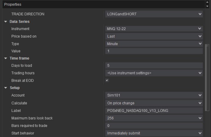 data series in strategy as MNQ 12-22 and time frames to 10 seconds to default