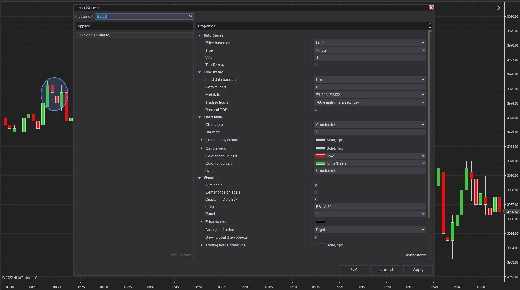 My bars do not always align their close and open. Attached is a picture of ES from today with no indicators running and a picture of the bars settings. The data for ES is from Ninjatrader Continuum. These gaps also appear for many other futures contracts I opened, CL 01-23 for example has similar gaps.