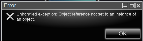 - Unhandled exception: Object reference not set to an instance of an object