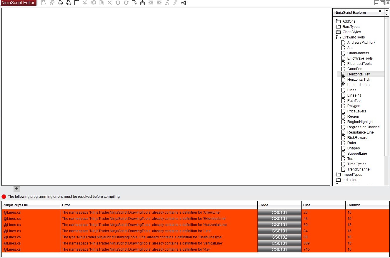 These errors must be resolved before you can import a Ninjascript Archive file.