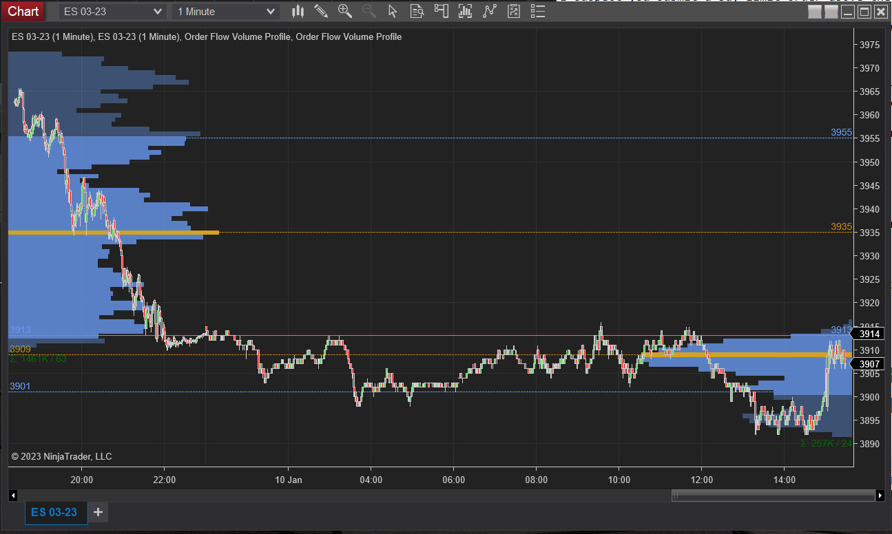 I've somewhat managed to get it working to start the day with 2 data series. The first being my main data series using 2000 tick chart and the second data series being the daily chart. I, then, setup Order Flow Volume Profile for the right side as standard and display in margin, which works great. However, the previous day requires to use Sessions - 1 and RTH. The issue is, it's anchored to that bar and doesn't scroll. There's no left margin to attach to like the previous one. So, as the day progresses, the information is just no longer visible.