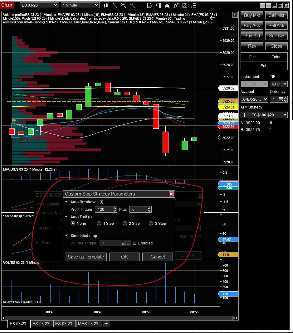 Hello, I tried it on ES, NQ, CL, GC, etc, I also tested it on two computers, same result, when it reaches the profit trigger amount, it doesn't move my stop loss to entry. So only the stop loss/take profit works, but the breakeven doesn't work. See attached images for the ATM strategy settings
