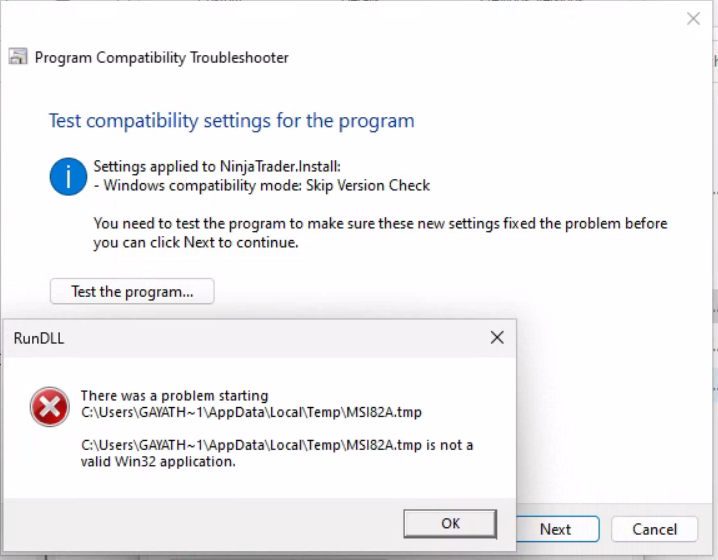 I'm trying to install ninja trader in azure windows365 virtual desktop but installation is keep getting failed. My machine is 64 bit but don't know why latest ninja trader version is failing.