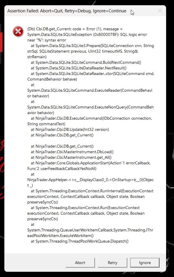 ninjatrader desktop error