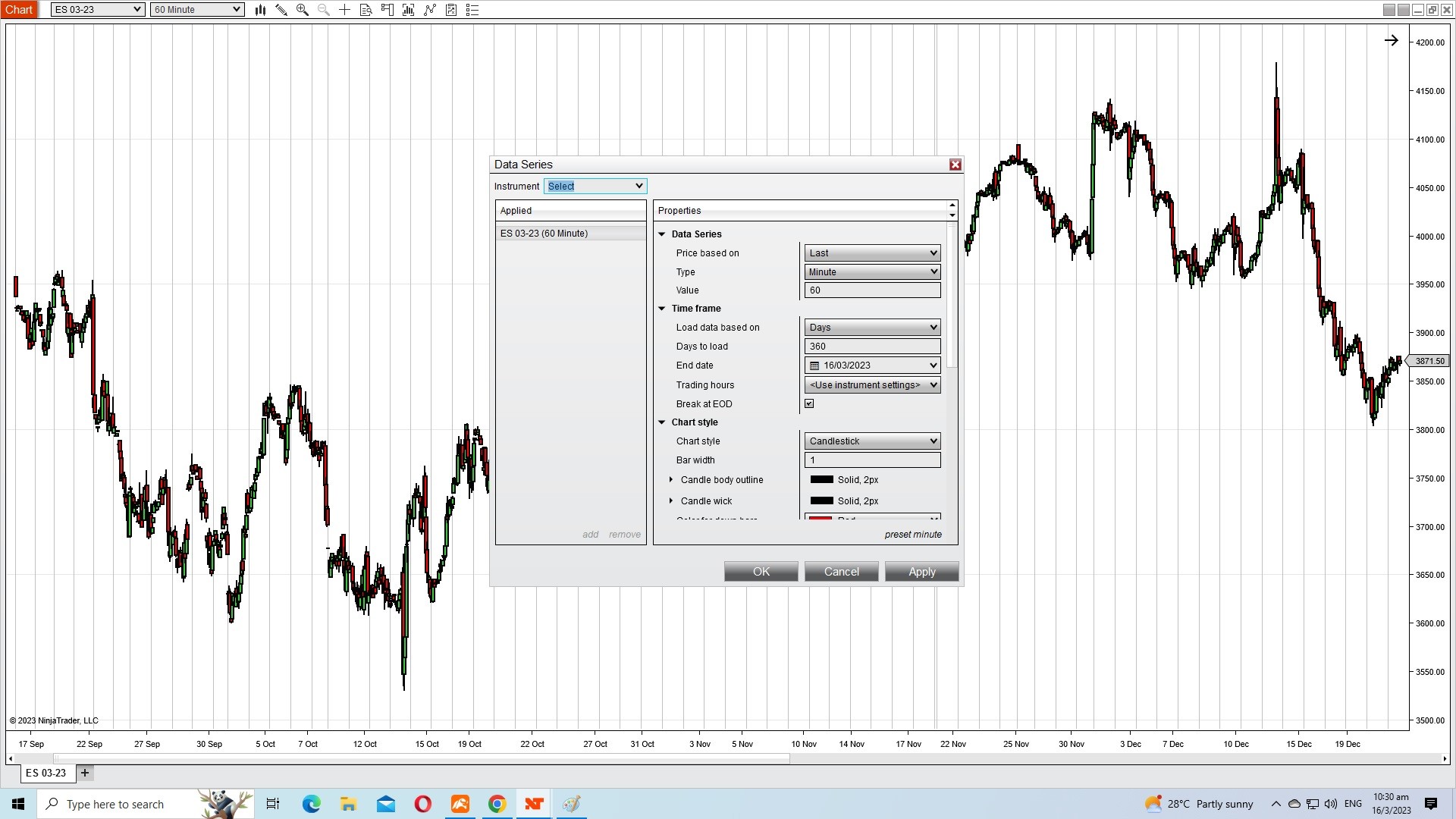 I try ES 03-23 60min chart with 360days data load but it only load from Mar23 to Sep22.