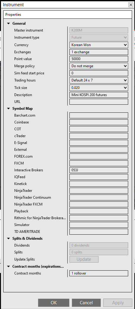 I have added the instrument to Instrument List but my configuration is obviously incorrect as I get an error message when trying to load. Attached is the IB TWS description for the symbol and attachment of my NT mapping plus error message. Appreciate your help.Tags: None