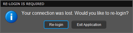 No evidence of lost connection. Also, "Re-login" implies entering username/pwd again onscreen ... but pressing that seemed to do it from cached information. That's preferable to re-entering manually, but it would be better if the instruction were more obviously "we will do this automatically for you".
