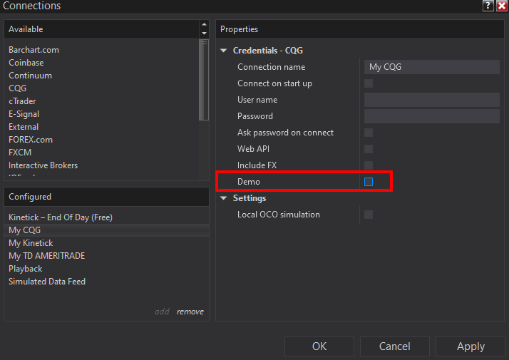 I am trying to use CQG data from AMP to load charts only, but every time I but in my CQG info, its says its invalid, but it works in other trading platforms like Jigsaw.