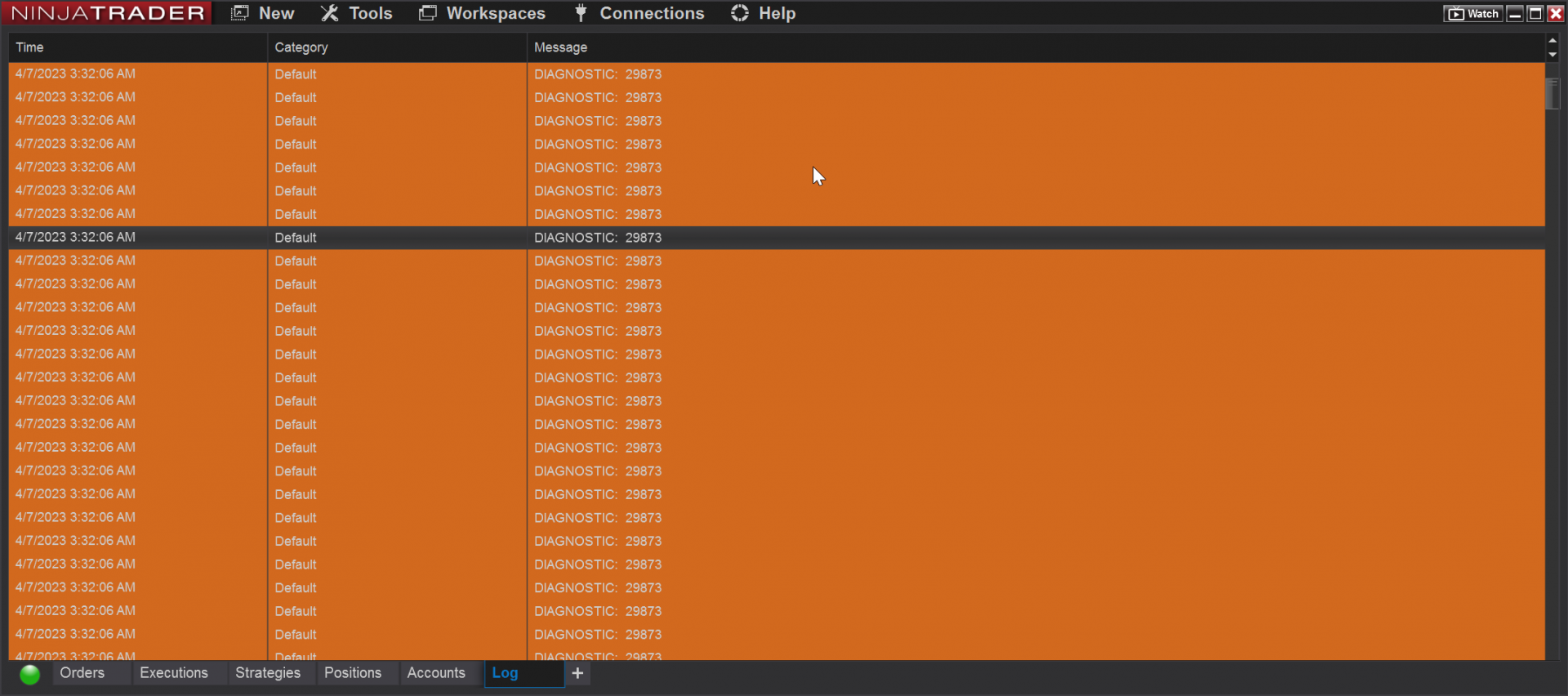 Please send us your log and trace files to support[AT]ninjatrader.com so we may investigate this further. In the subject of your email include ATTN: Brandon H and in the body of the email include a link to this forum post and a brief description of the issue.