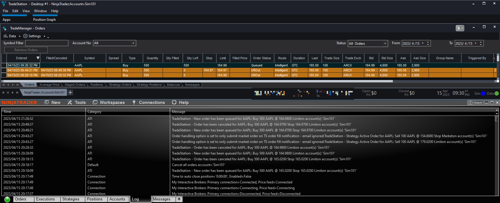 Place orders on your IB brokerage account using tradestation and Ninja Trader