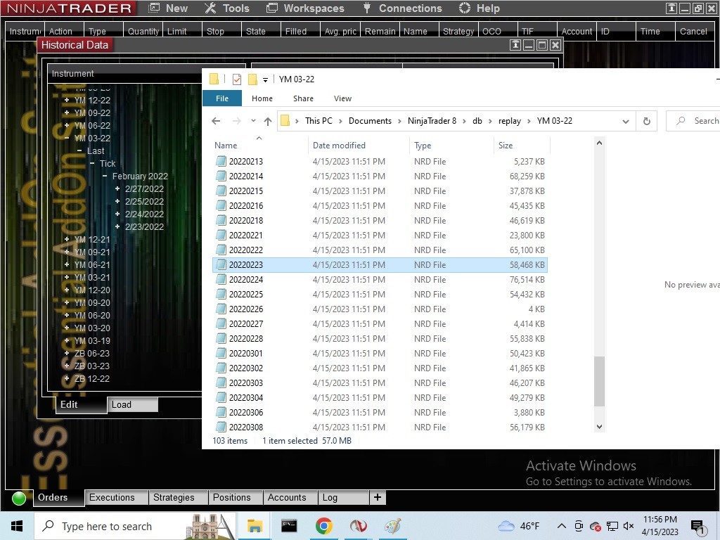 If you look at my screen shot, it shows an example. I'm using data from YM 03-22. Within the Historic Data Manager, you see that I only have data for a couple of days, Feb 22-27 2022. Yet, when I go into the /replay directory, all files for each day is there.