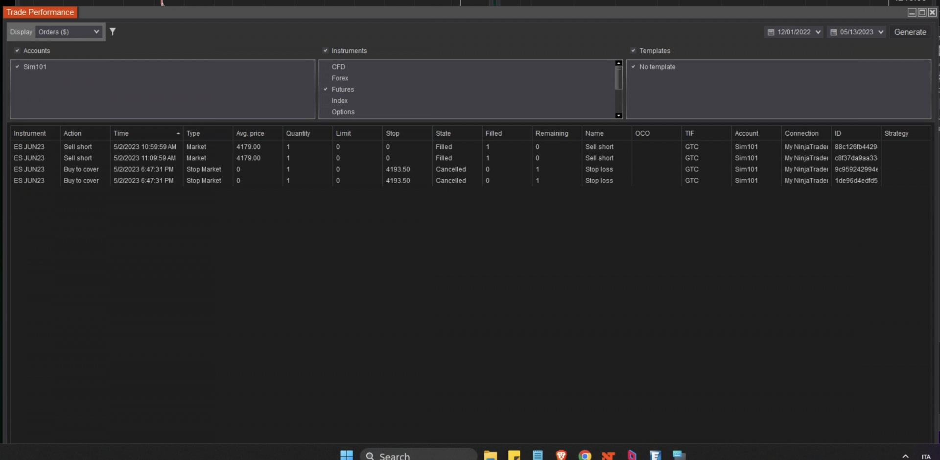 Hello, I'm trying to see what NT has done in the past, and why a trade has been closed by my bot.