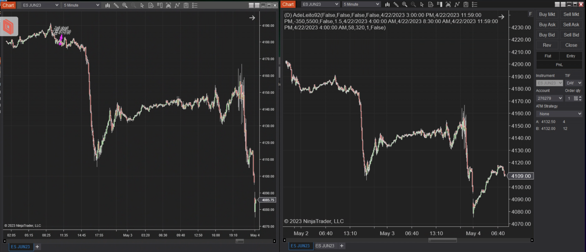 When you have a NinjaScript strategy added to one chart but not the other chart, the historical order markers you see on the second chart will not appear on the first chart window with the strategy until the NinjaScript strategy is removed from the chart.