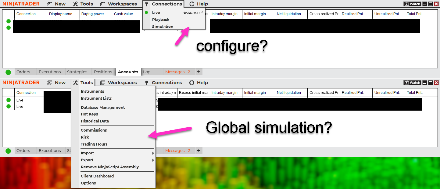 Lost Global simulation & configure connections