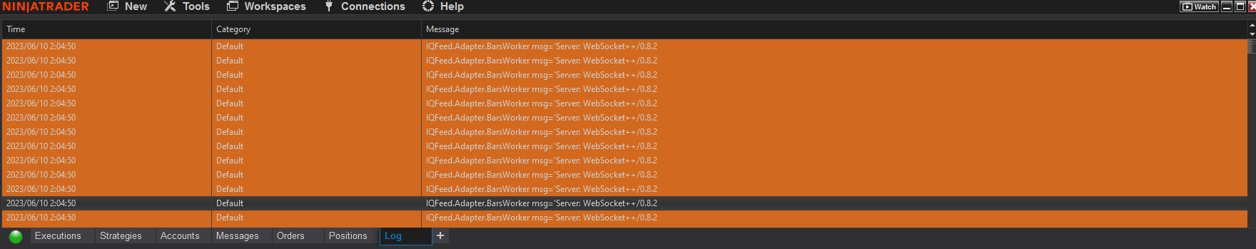 However, I have another problem. When I open the log tab in the NinjaTrader platform, I get an error message and the log tab window gets stuck and I can't exit the platform in the normal way.