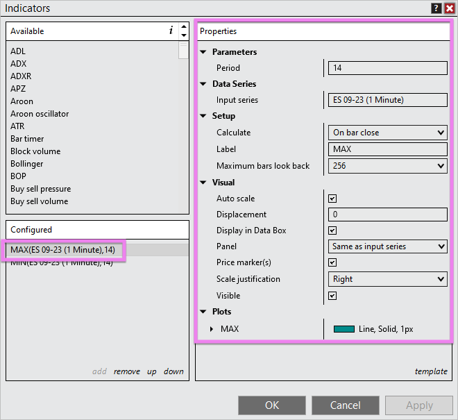 Or, did you create a custom NinjaScript indicator that plots the MAX and MIN on the chart?