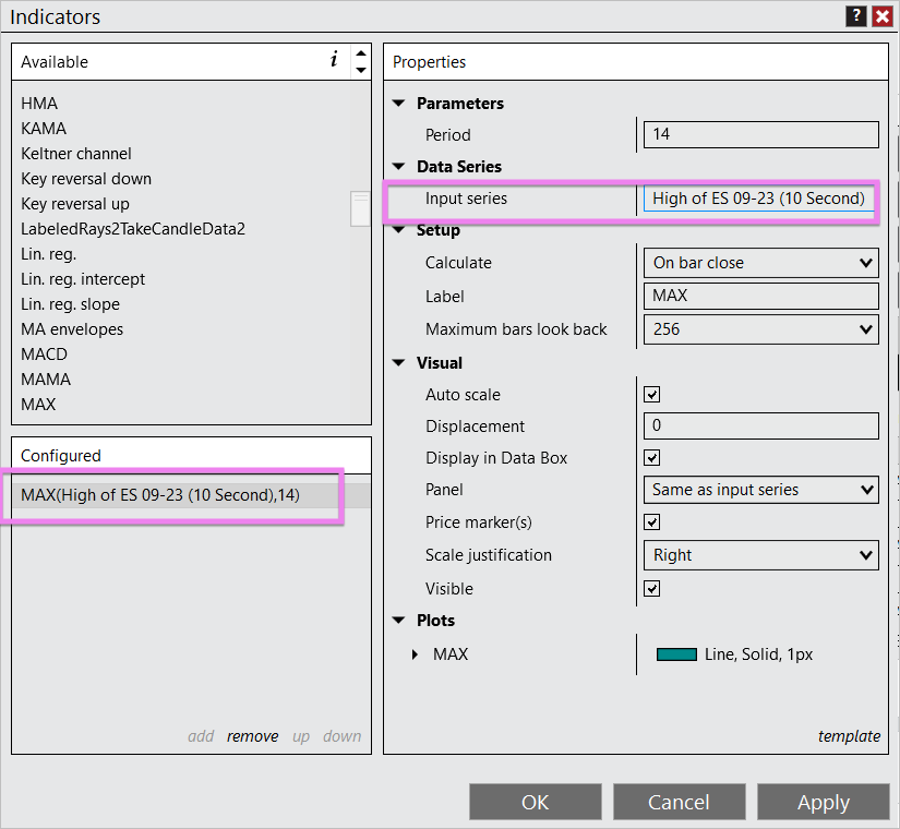 Also, please send me a screenshot of the settings you are using when applying the MAX and MIN indicators to the chart.- To send a screenshot with Windows 10 or newer I would recommend using the Windows Snipping Tool.