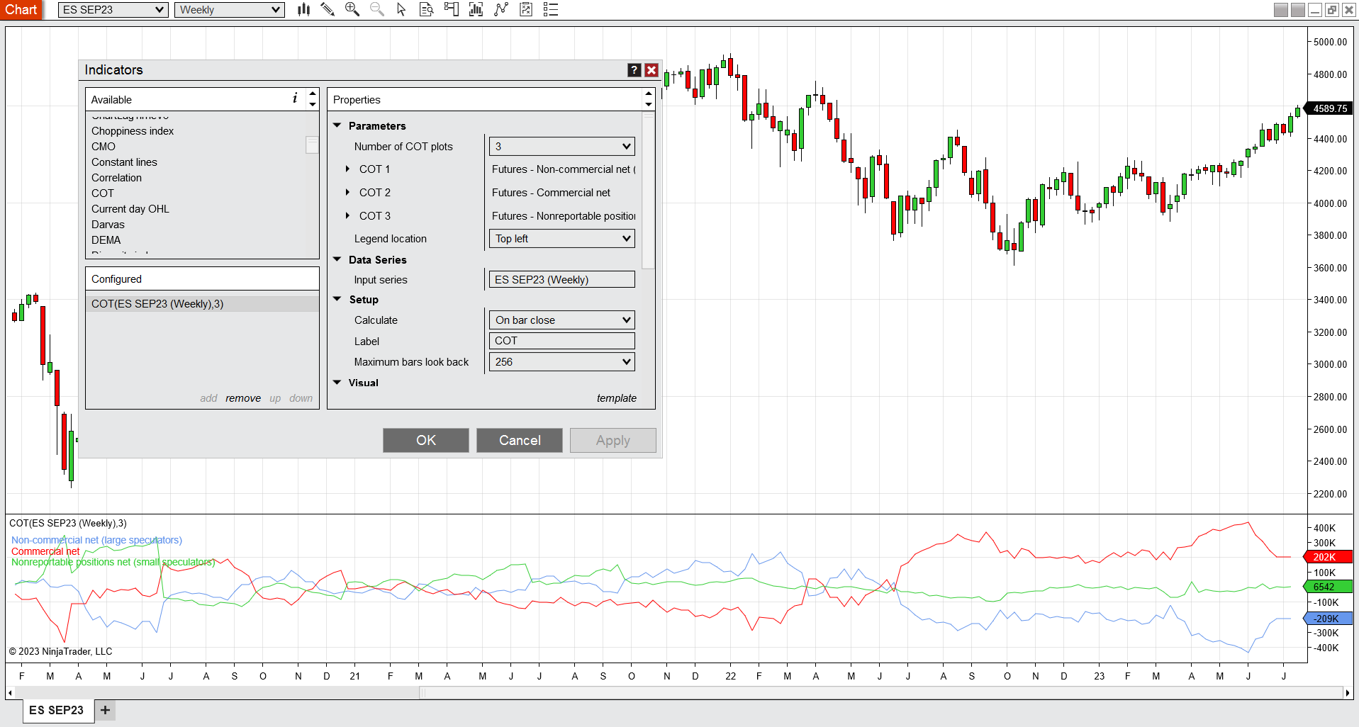 In NinjaScriptEditor I can also see the COT Indicator and also see the COT NinjaScript.