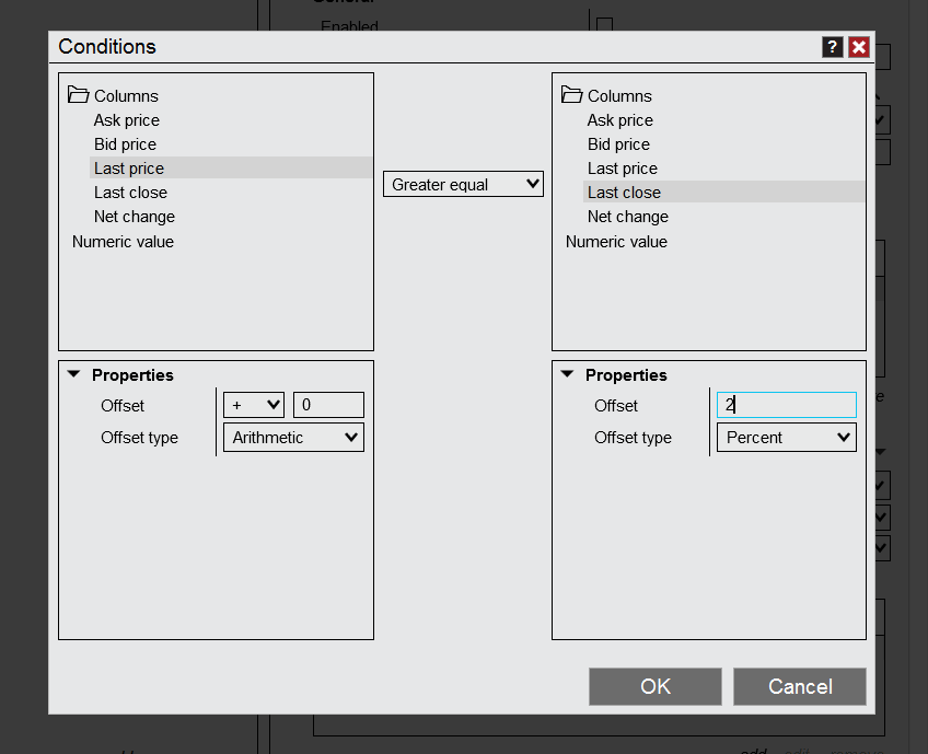 I add "Net Change" column and set MA Alert like this: "Net Change" Greater equal "Numeric value = 2" but it didn't work. Please show me how to do it. Thank you.
