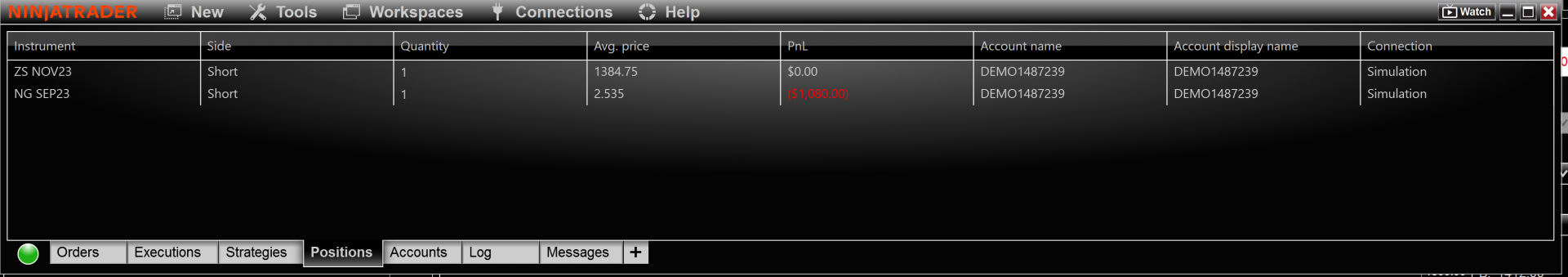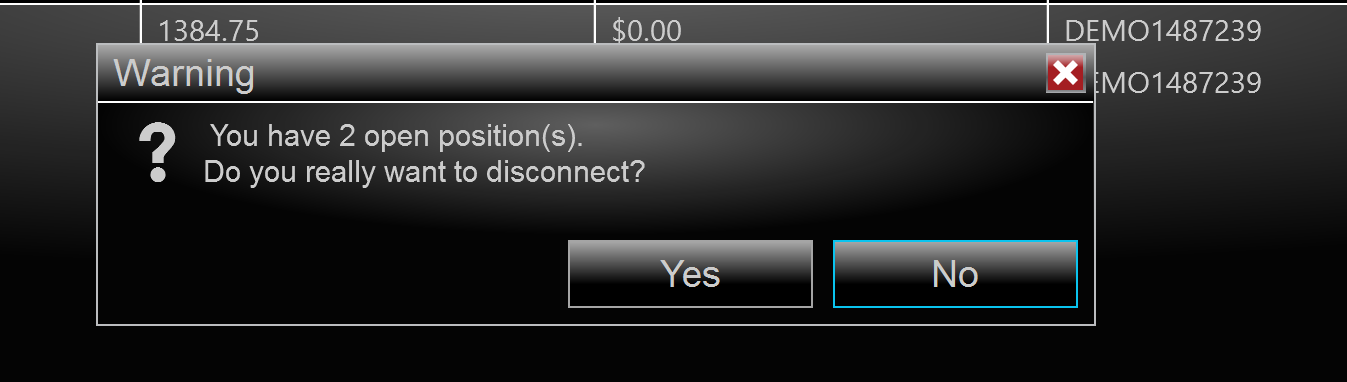 This is my simulation account. When I tried to disconnect it said I had two open positions. One being NG