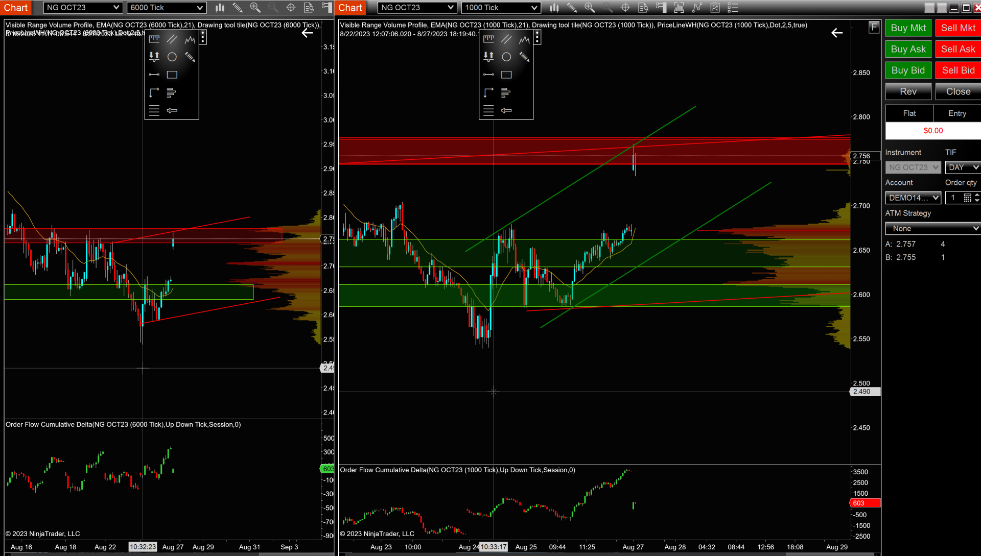 Okay thank you for your help. I appreciate it. I have one more question for you. Normally I have two charts open. One on the left one on the right. Typically I have a slower tick chart on the left and a faster tick chart on the right.