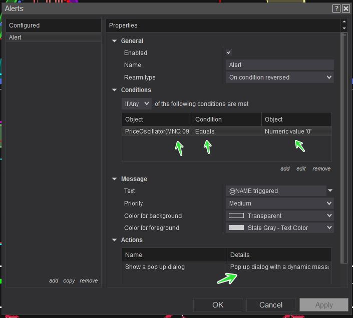 I've tried using "Alert" when Price Oscilator "touches" zero line, but not possible. NinjaTrader Alert doesn't recognize "zero line", so it's not possible use this variable.
