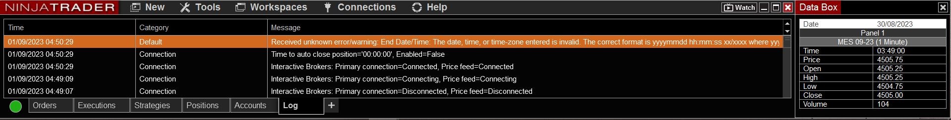 Please follow the steps below to manually attach your log and trace files to your response so I may investigate this matter further.- Open the Windows File Explorer (hotkey = Windows key + E) Then navigate to, "Documents" > 'NinjaTrader 8' folder