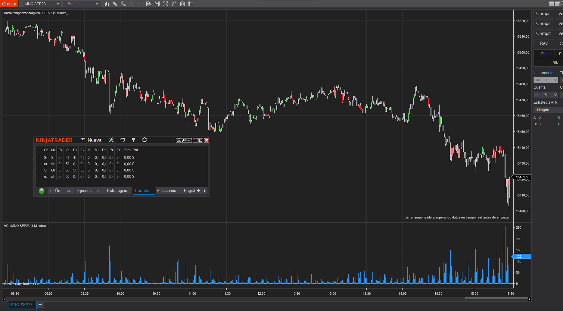 hola, buenos dias, estoy usando ninja trader y desde el viernes no me funciona el grafico, se quedo con la ultima vela de entrada del viernes y no me funciona, el grafico aun sigue como se quedo, que puedo hacer, ya he reiniciado ninja, he reiniciado todo los historiales de datos y sigue sin hacer naadaLast edited by StevenLC; 09-19-2023, 08:42 AM.Tags: None
