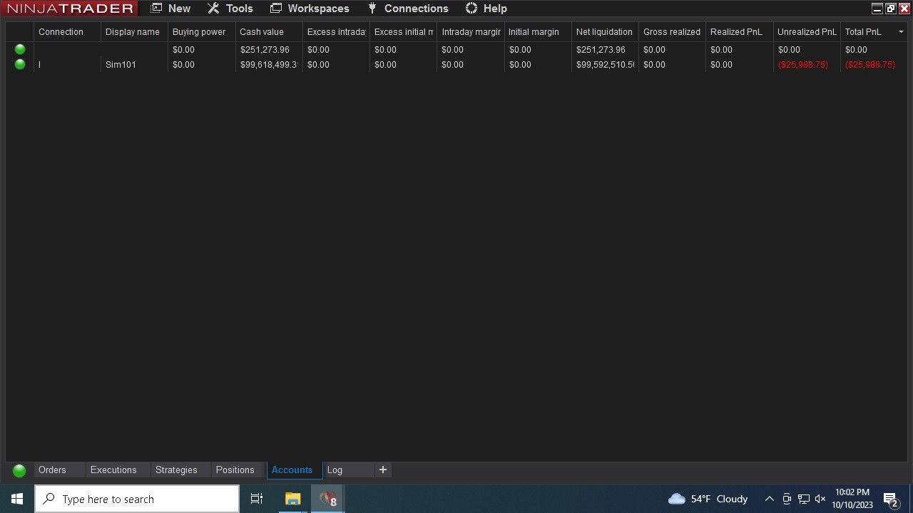 Hi there, somehow I've gotten myself into a situation where, although my strategies are active, none of them are displayed. You can see from the accounts window, I have unrealized P/L, from these running strategies. Yet, within the strategies tab, none of them are displayed.