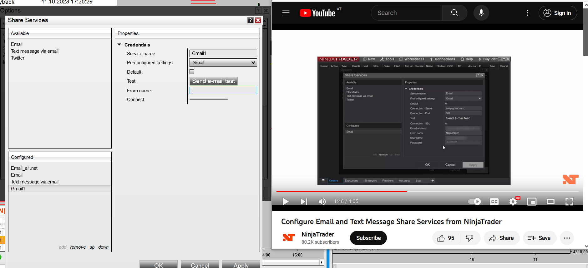 | 18.10.2023 16:02:33 | NinjaScript | There was an error sending a mail message: The SMTP server requires a secure connection or the client was not authenticated. The server response was: 5.7.0 Authentication Required. Learn more at |