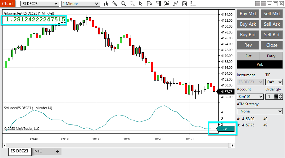Further, ensure that if your custom indicator is set to Calculate.OnPriceChange, that the NinjaTrader StdDev indicator also uses Calculate.OnPriceChange.Attached Files<span class="name">Brandon H.</span><span class="title">NinjaTrader Customer Service</span><iframe name="sig" id="sigFrame" src="/support/forum/core/clientscript/Signature/signature.php" frameborder="0" border="0" cellspacing="0" style="border-style: none;width: 100%; height: 120px;"></iframe>