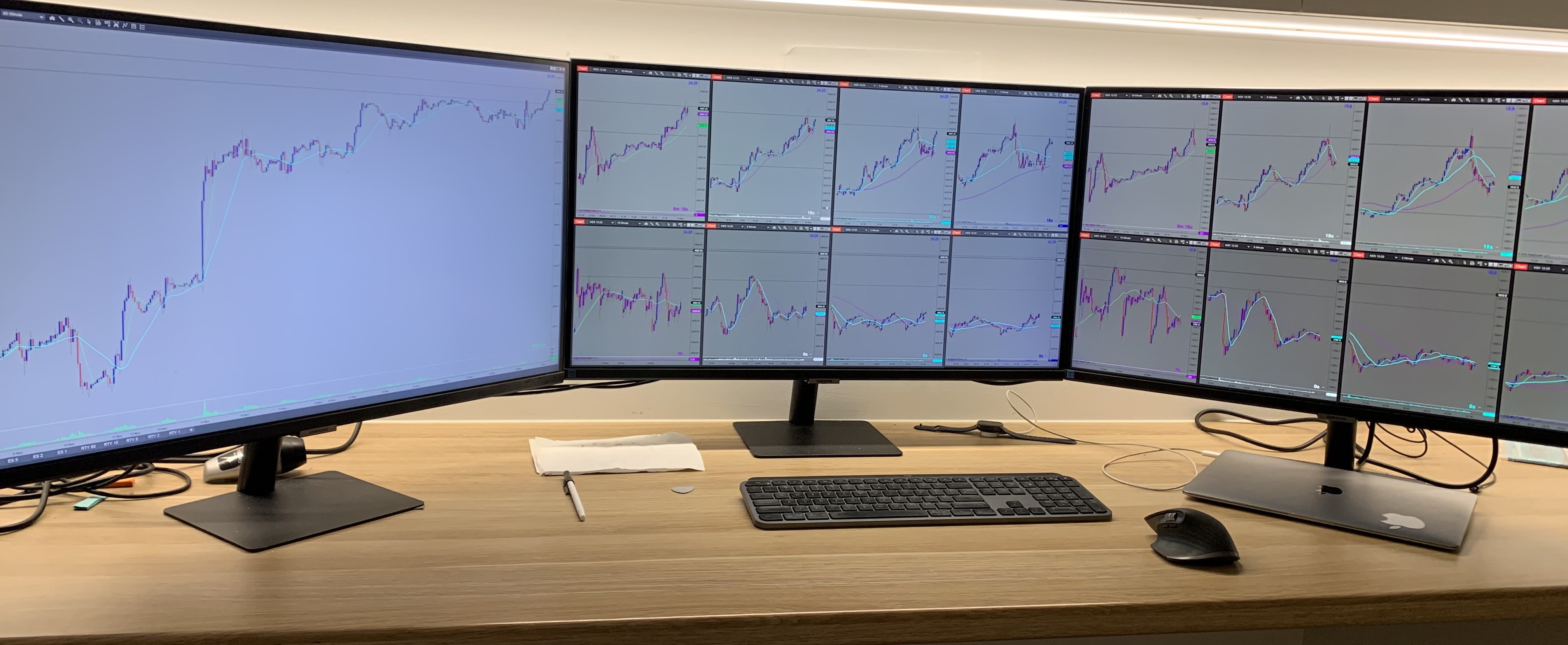 The setup I am running has 2 monitors with 8 charts open with the third having a larger screen with 10 tabs.