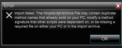 I am getting this Error when installing/importing an AddOn. (See image below.) Seems I may have duplicate Third-Party indicators in my Indicators folder.