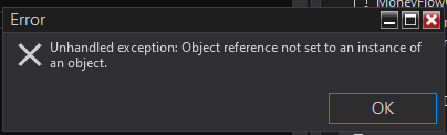 Sometimes I get this unhandled exception dialog - usually do to some minor typo. It produces a million instances, can we get a way to close these without restarting the app? The main problem is that it's stuck on the top of the windowTags: None