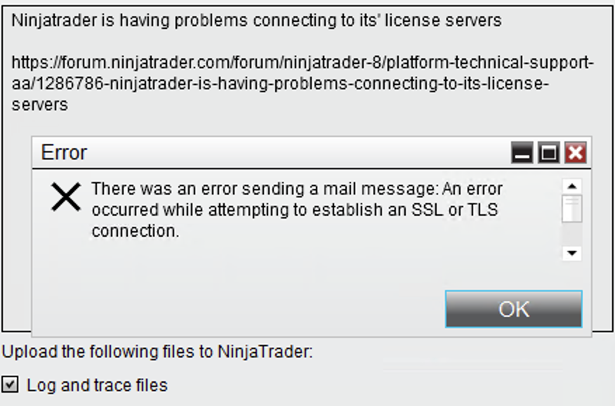 This would indicate that NinjaTrader is not able to access our servers at all.