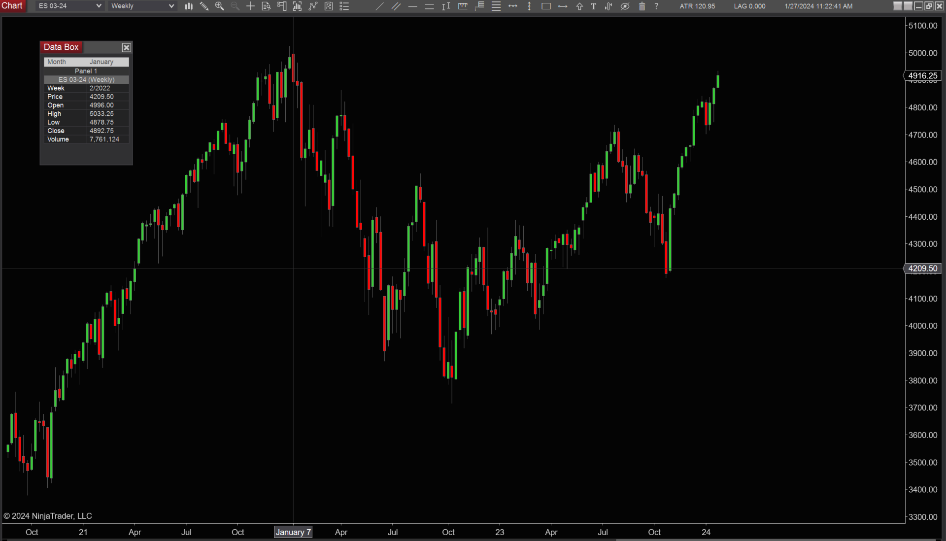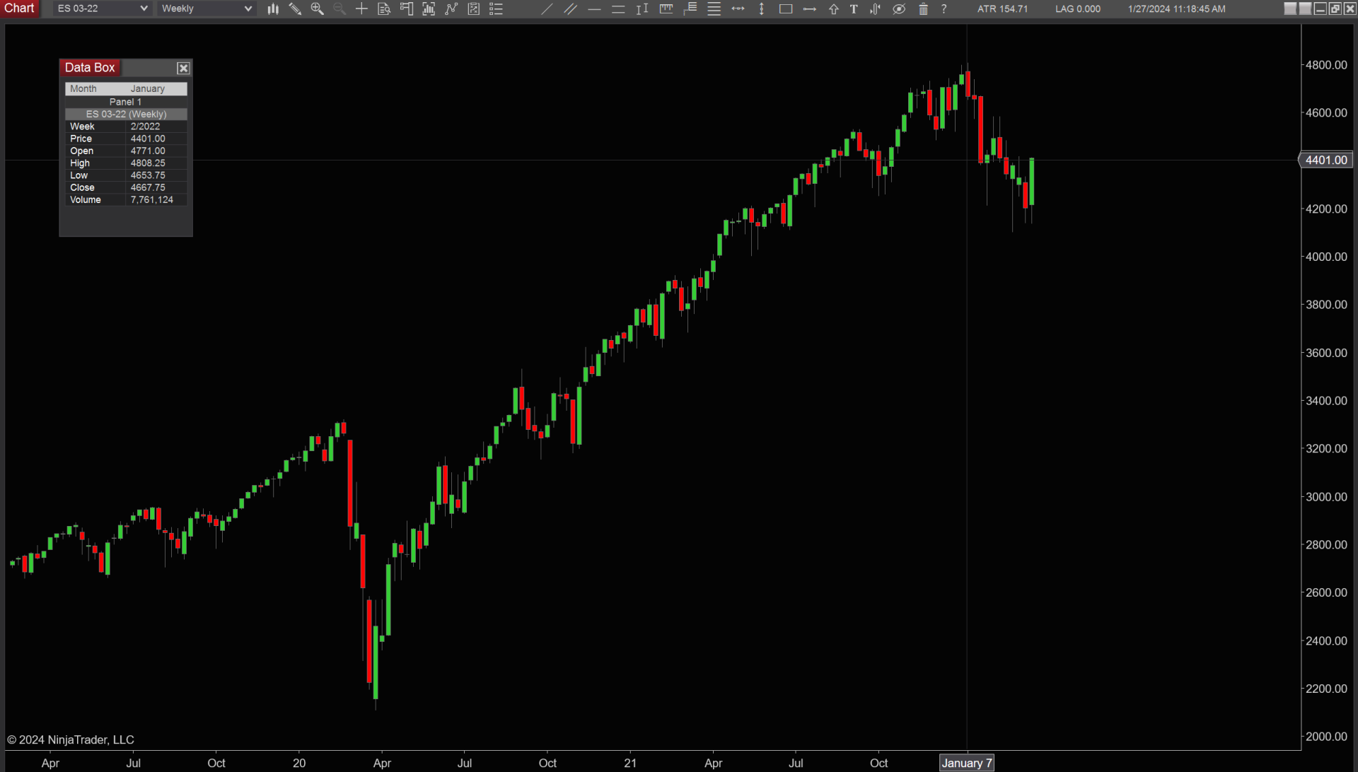 I've been hearing for the last week that the S&P 500 is at all time highs but when I pull up a weekly chart in NT8 (same for a daily chart) for the current contract (ES 03-24) it shows an all time high of 5033.25 from January 2022 that has not been reached yet. If I pull up the old ES 03-22 contract it shows the high at 4808.25. Any idea why there is a discrepency? Screenshots attached.