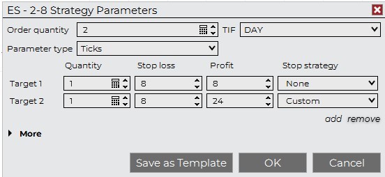3) Set Profit Target 2 @ 400 ticks, 1 contract