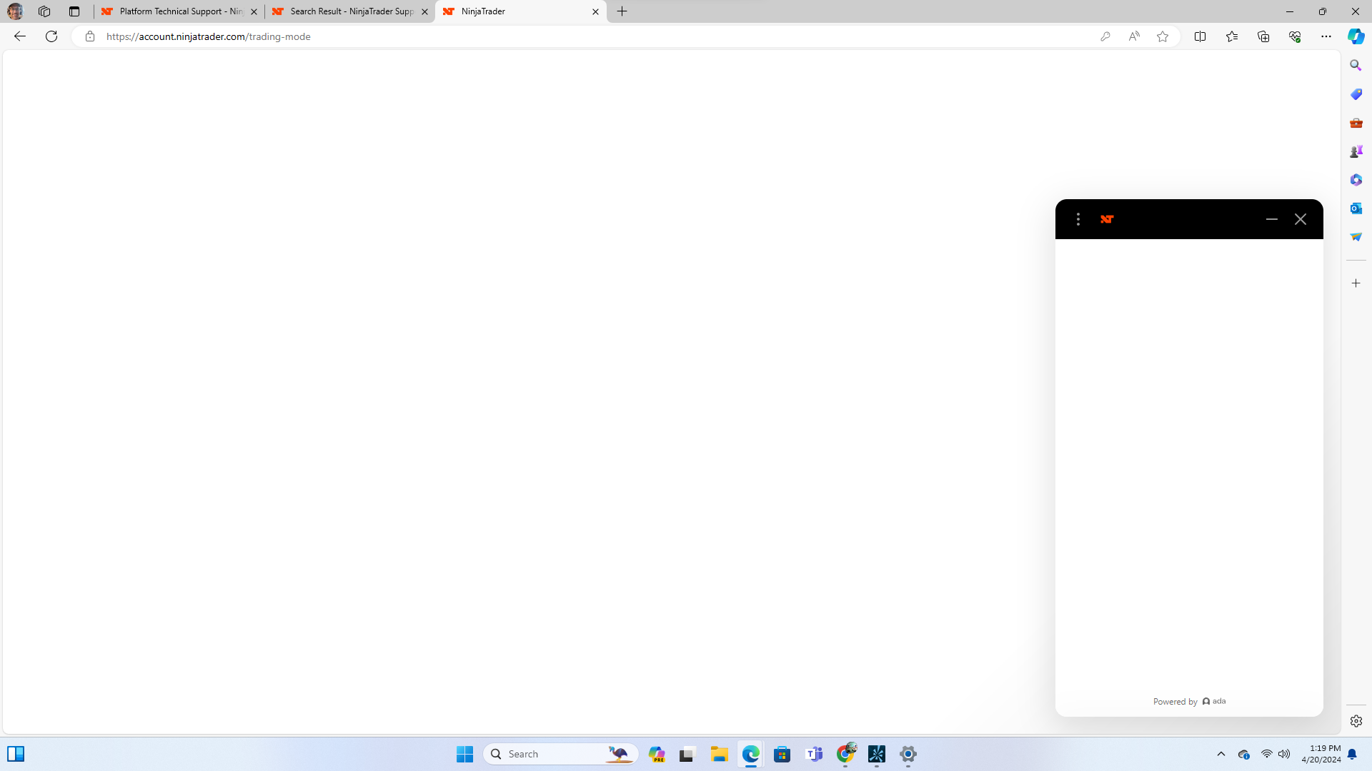 New to the platform. Able to login to ninjatrader account on my phone but when I try to login on the desktop chrome (XPS 8930, i7 3.2GHz, 16GB ram, windows 11, 1T HD and 256 SSD) in Chrome browser, the screen never loads anything, it just goes blank after I enter my login/PW and select "login" Started trying to login on the desktop yesterday. I'm wanting to download the desktop platform but can't ever get logged in to allow this.