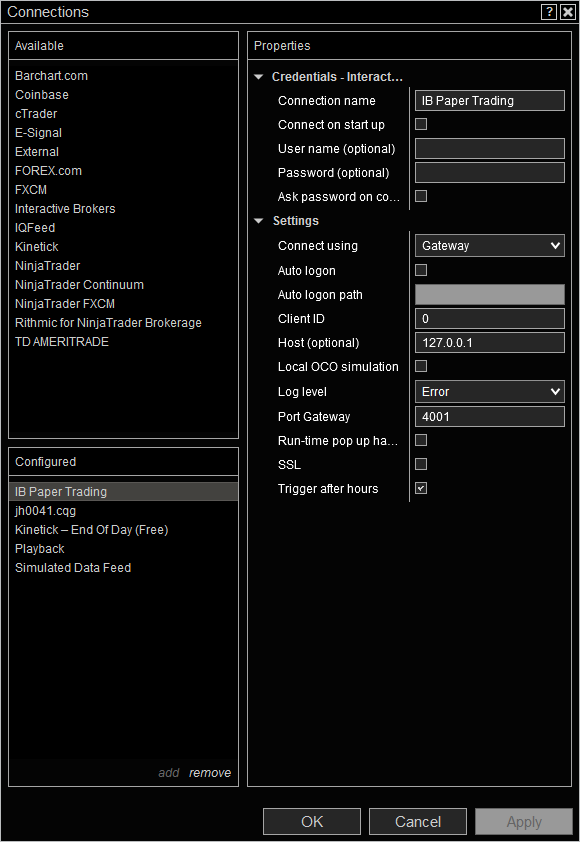 - The Username and Password don't have to be entered within NinjaTrader unless you are using the auto-login feature. So, you can remove those from the blanks before taking your screenshots. Or, use something to blur the credentials out.