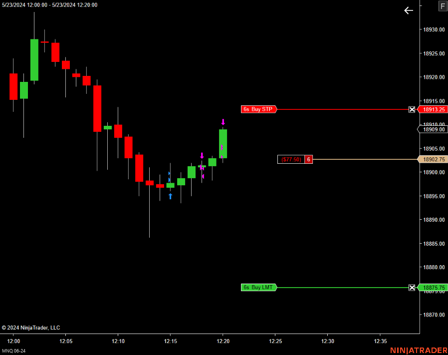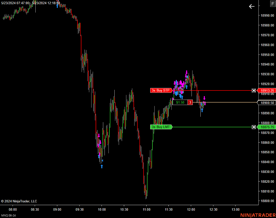 I place a trade on Mnq on the sim with a tick stop of 50 ticks and a take profit of 100 ticks