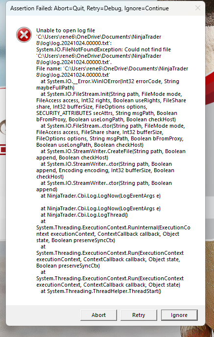 Last edited by NinjaTrader_LuisH; 10-29-2024, 06:24 AM. Reason: please do not leave log and trace files in this forum post as it may contain sensitive information.