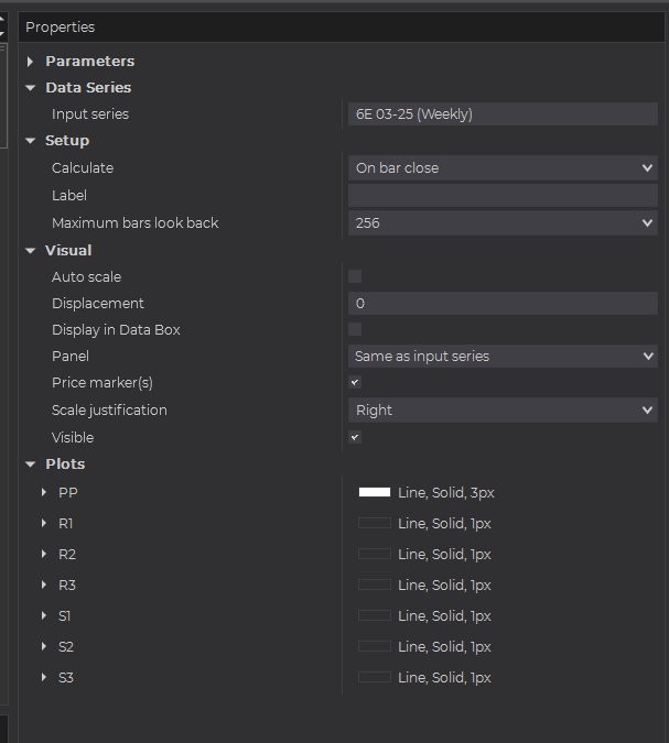 I found an indicator in the Available Indicators List (Pivots). I don't know if it's an NT supplied indicator or one that I entered from a private party a long time ago.