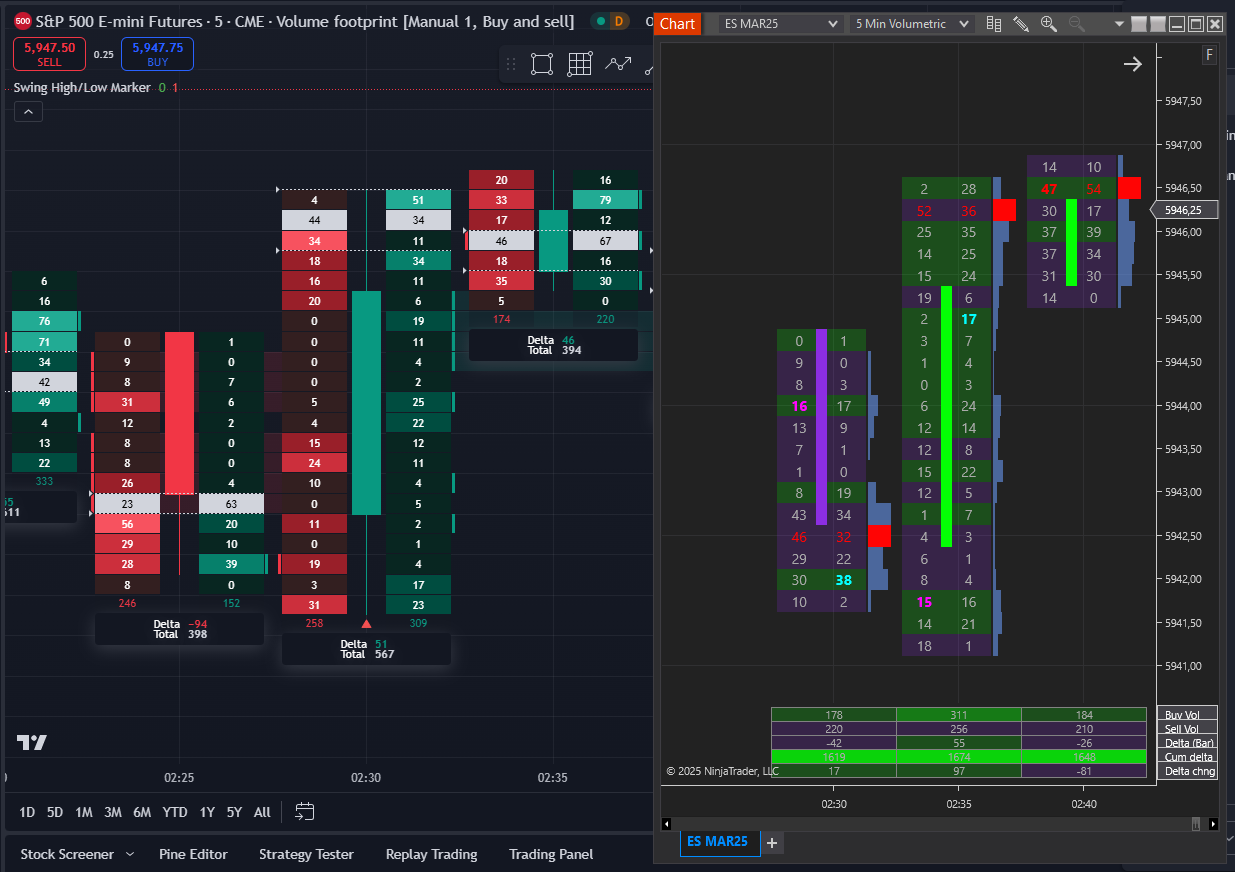 I found difference between NinjaTrader and TradingView footprint chart.