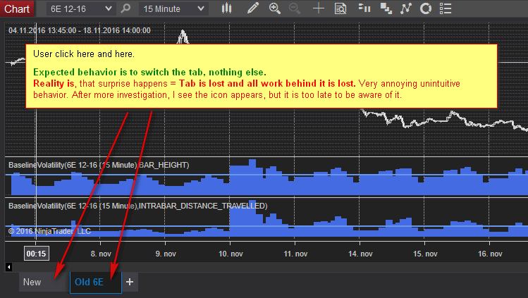 One click into invisible space (i.e. it looks safe to click, no hint about closing tab) and all the work is lost !