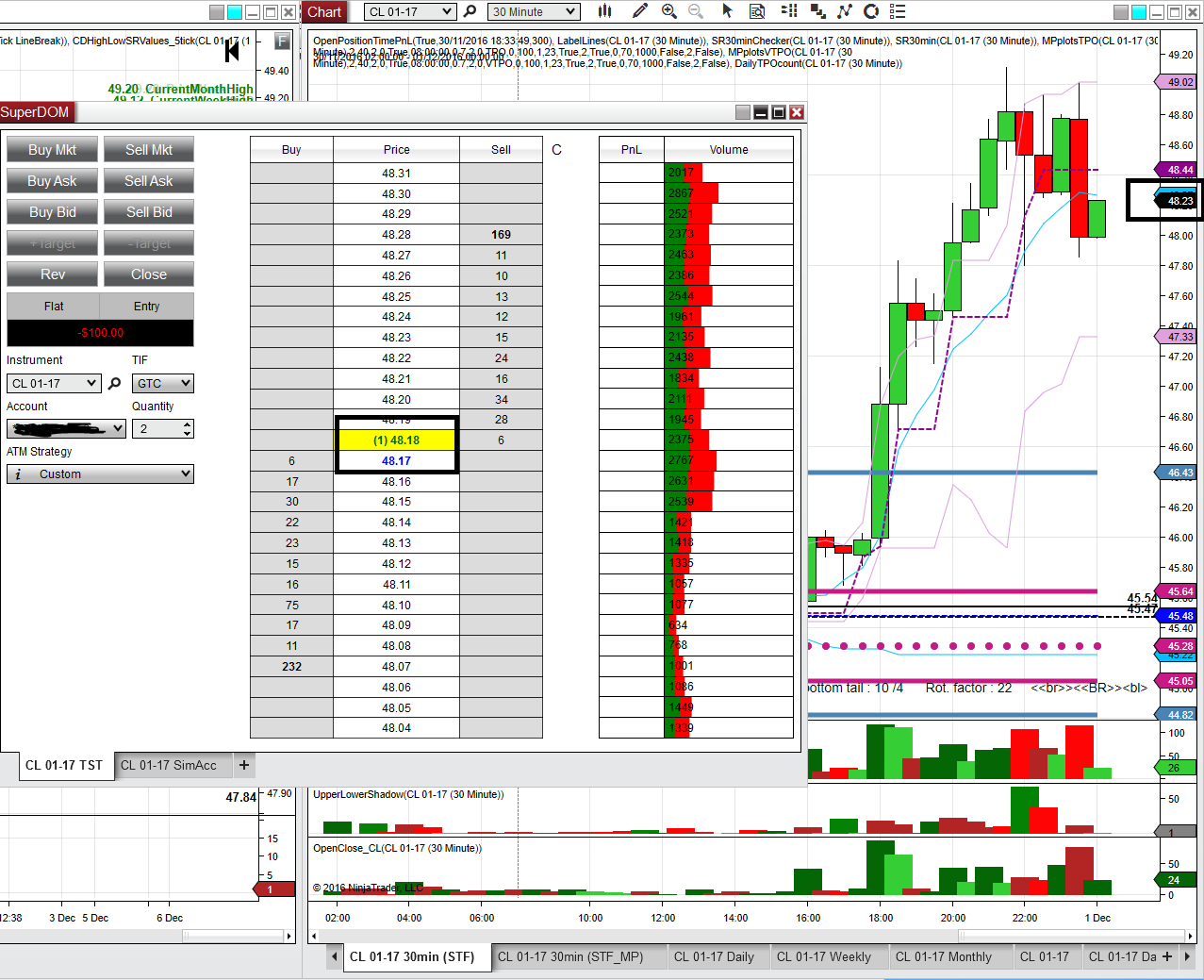 Firstly, I've noticed a discrepancy between the price shown in superDom and that shown on charts at times. As shown in the attached screenshots, the superDom shows 48.18 while the chart shows 48.23 (slip of 5 ticks) in one and the superDom shows 48.16 while the chart shows 48.05 (slip of 11 ticks) in the other. Why is there a difference in the prices shown?