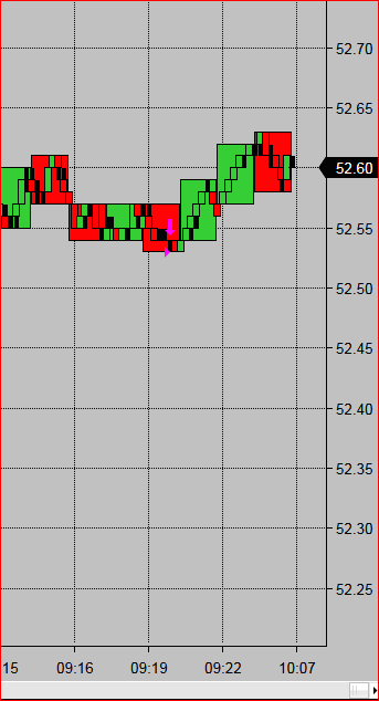 Correct , Box Style for 343. I have noticed something. It only happens when the Right side margin is adjusted such that vertical Grid line is leading the current Price bar. It actually stopped happening on my chart and I adjusted the rightside margin until the grid line came in and then it started up again.
