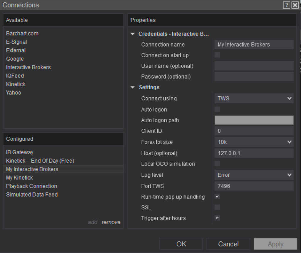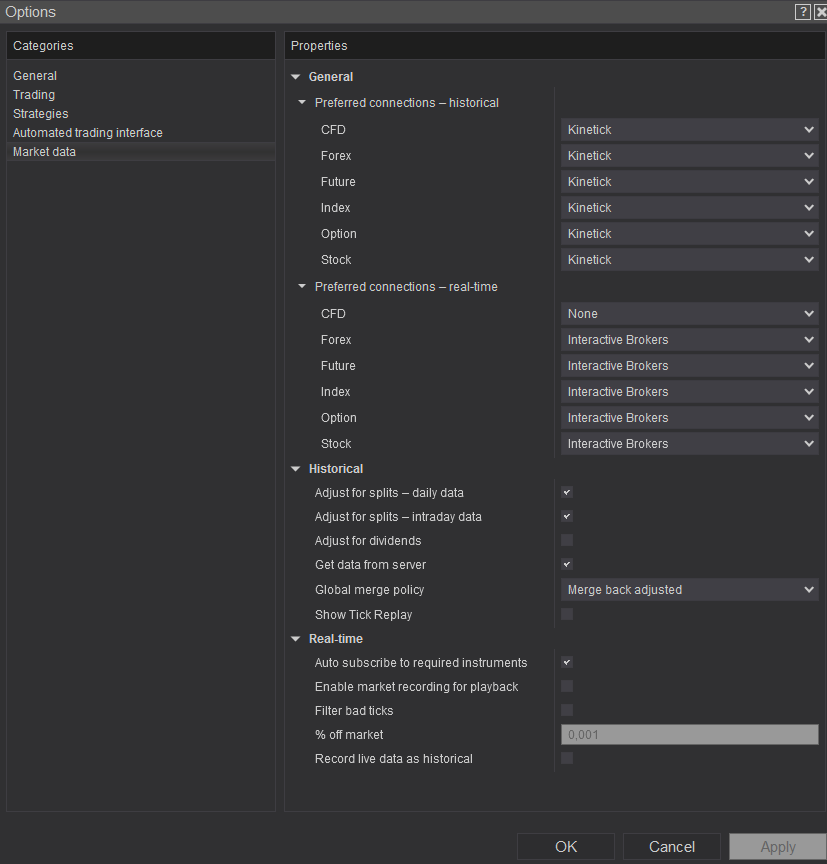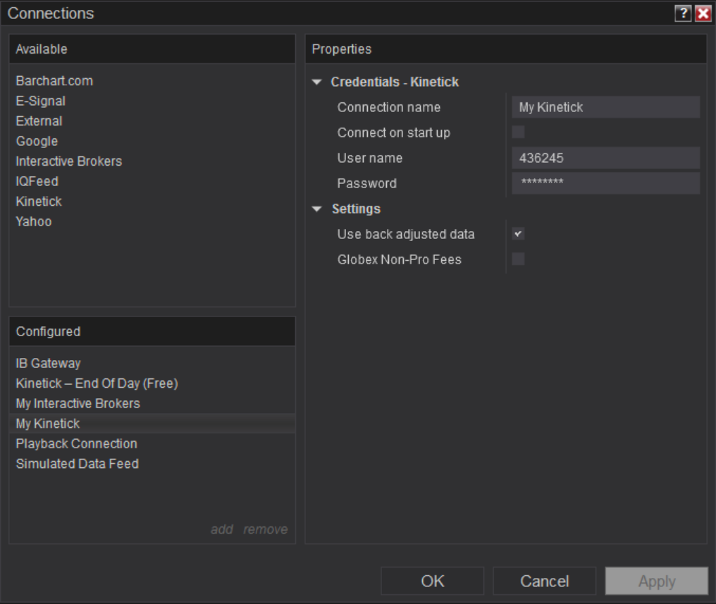 I am using Kinetic as a historical datafeed (subscription) and connect to IB for current pricing and trading.