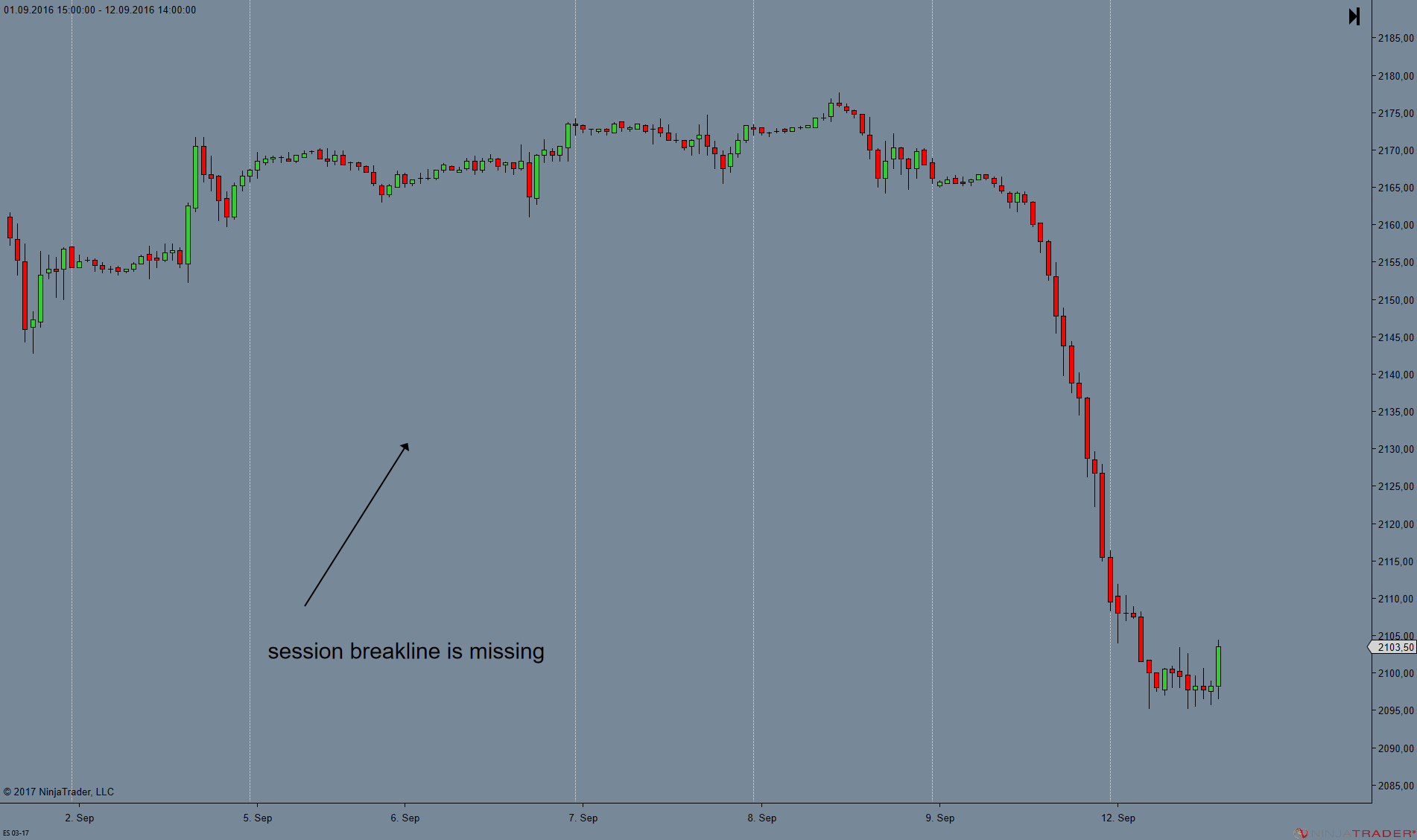 September 5 has now disappeared again. It did not plot at all. I do not know the reason. I remember that bug, where Monday's session disappeared. Maybe it is linked to that bug,