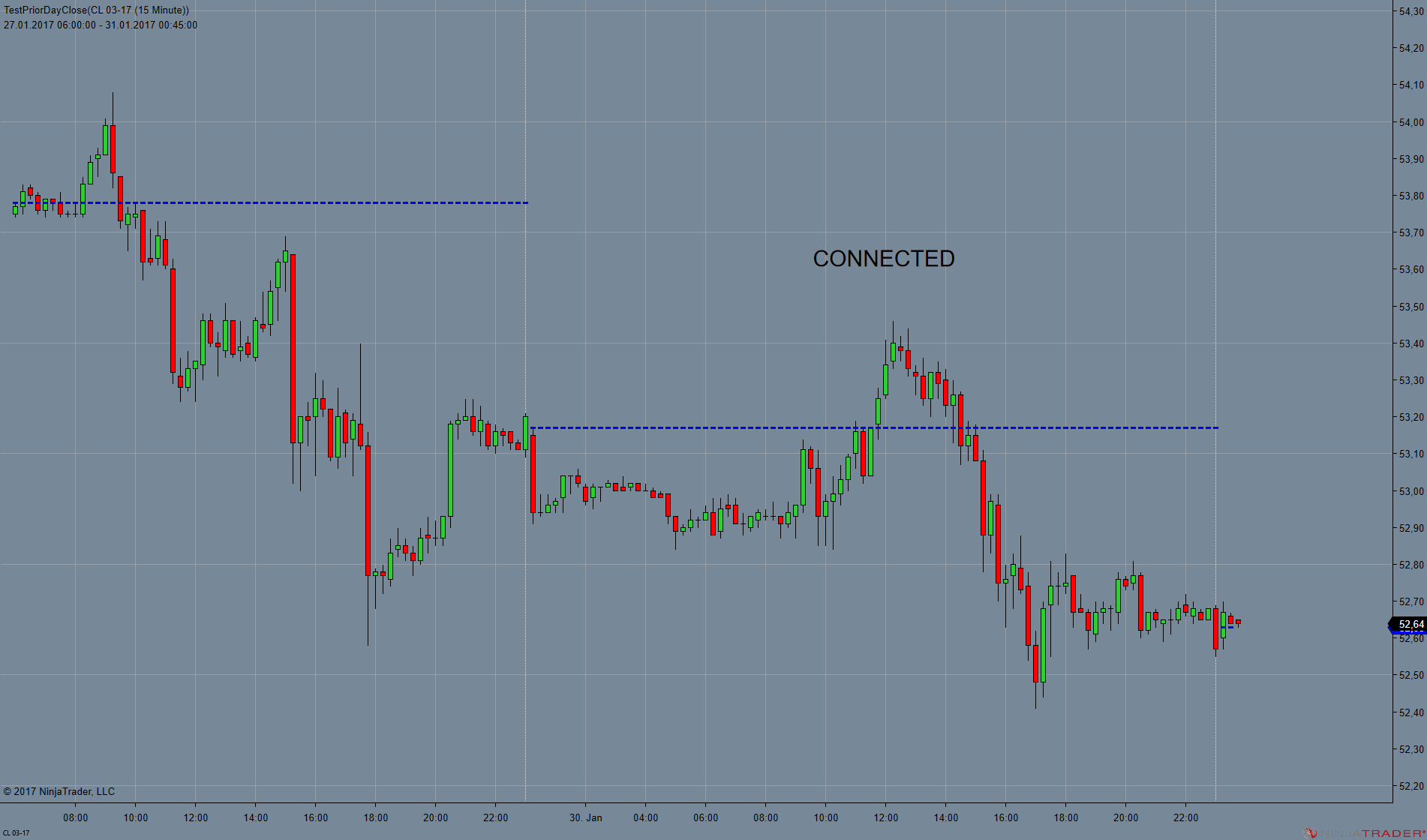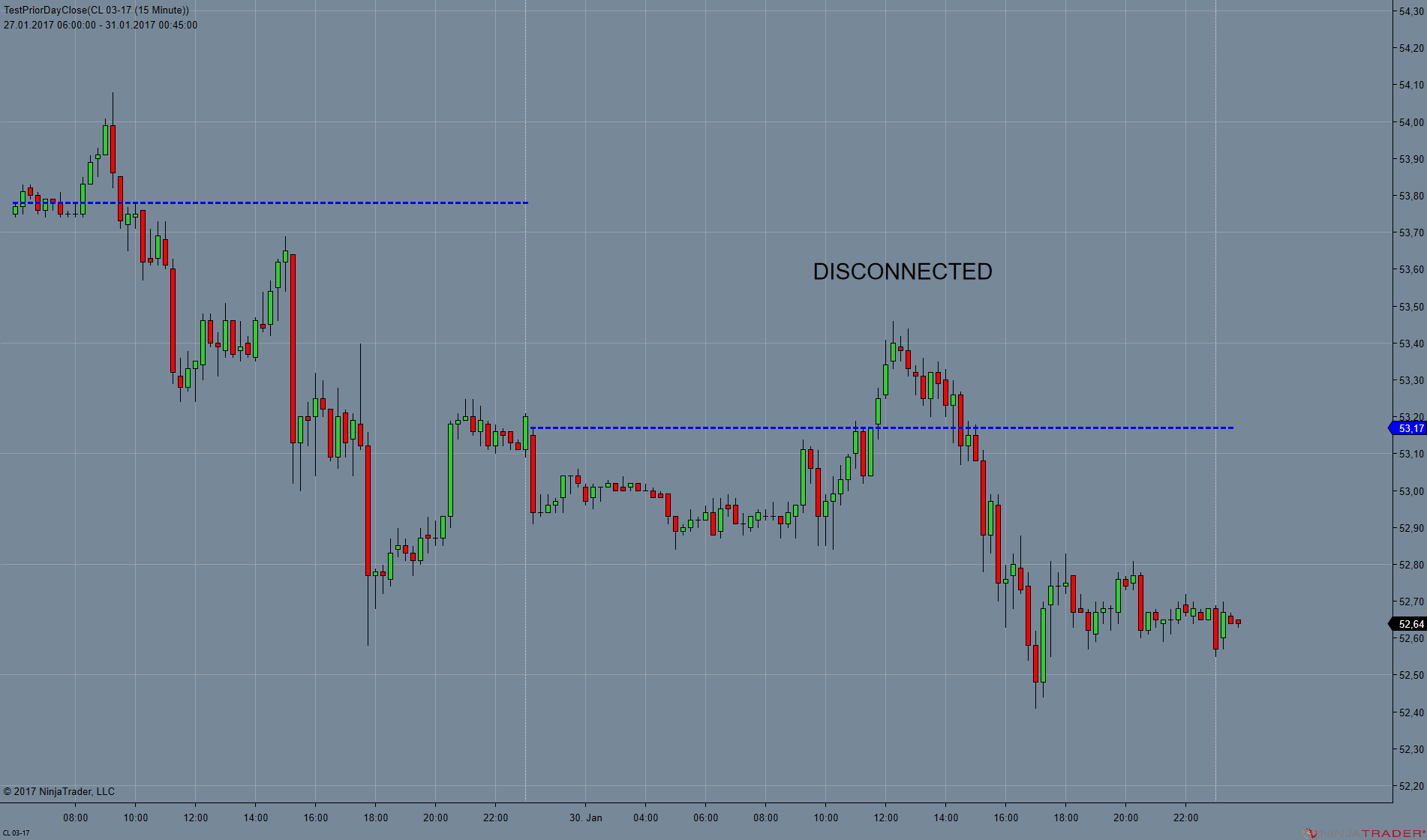 Please find below two charts for CL 03-17. The disconnected chart is flawed. The connected chart is correct. The problem is reproducible with CL.