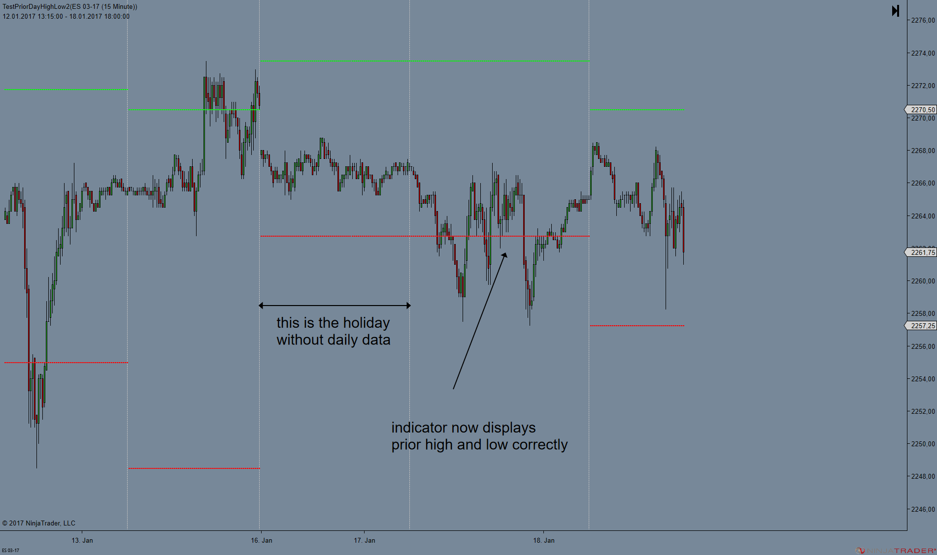 Please find attached modified indicator to fix the CME holiday problem and two screenshots showing that the holiday problem is fixed, but that I cannot display yesterday´s daily high and low today.